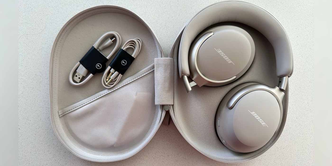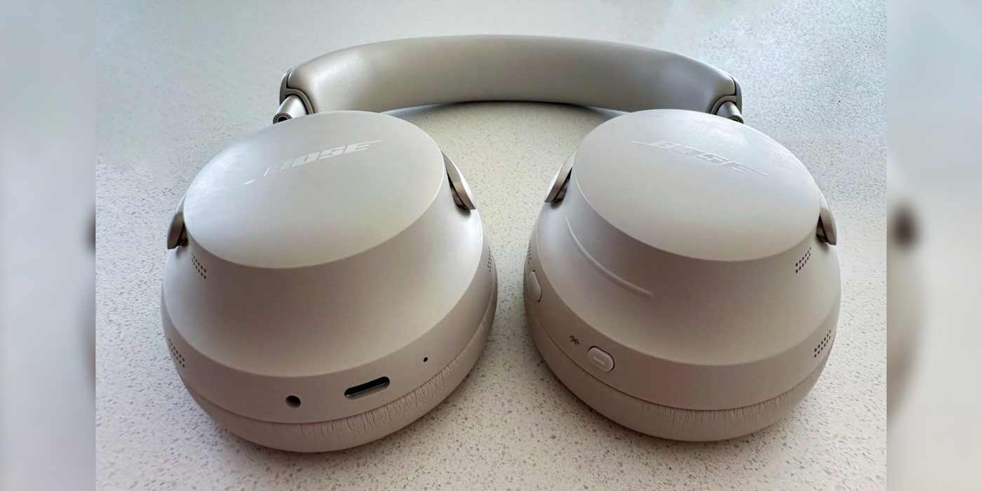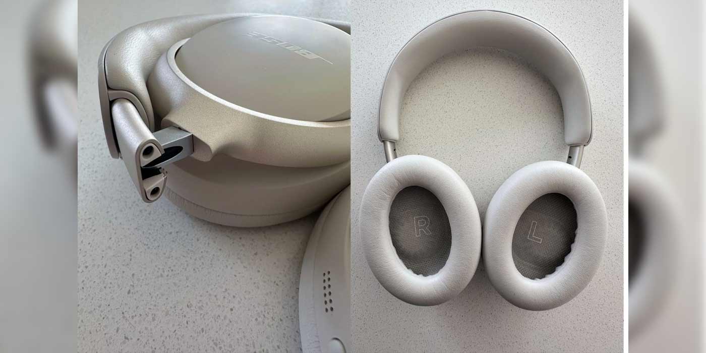 A krém színben készült Bose QuietComfort Ultra fülhallgató egy kényelmes fejpánttal rendelkezik, amely láthatóan fém maggal erősített. Mindkét fülkagyló egy-egy zsanéron van, így az Ultra könnyen összehajtható és tárolható a mellékelt kemény tokban. A képeken a fülkagylók mélynek tűnnek, bár ez a kamera hatása is lehet. Ha valóban mélyek, akkor ez a mélyebb hangzástudatot szolgálhatja.