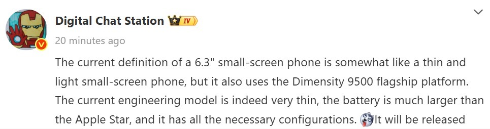 A készülék 6,3 hüvelykes OLED kijelzőt kaphat, ami jól illik a „Mini” koncepcióhoz, de nem túl kicsi ahhoz, hogy kompromisszumos élményt adjon. A hardveres alapot egy MediaTek Dimensity 9500 lapka adhatja, ami a Qualcomm-féle Snapdragon 8 Elite Gen2 közvetlen kihívója lehet, legalábbis teljesítmény és hatékonyság szempontjából.