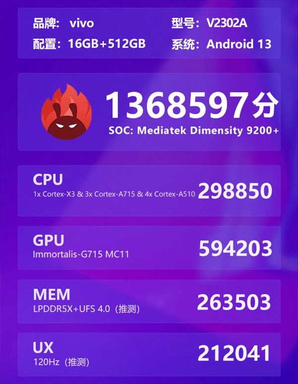 Az új processzor, a Dimensity 9200+, egy Vivo okostelefon fedélzetén található. A hírek szerint az iQOO Neo8 Pro lehet az első készülék, amely ezt a processzort kapja. A telefon 16 GB LPDDR5X RAM-mal, 512 GB gyors UFS 4.0 tárhellyel és Android 13 operációs rendszerrel rendelkezik. Az AnTuTu teszt eredménye 1 368 597 pont, ami körülbelül 70 000 ponttal magasabb, mint a jelenlegi generáció, a Dimensity 9200.