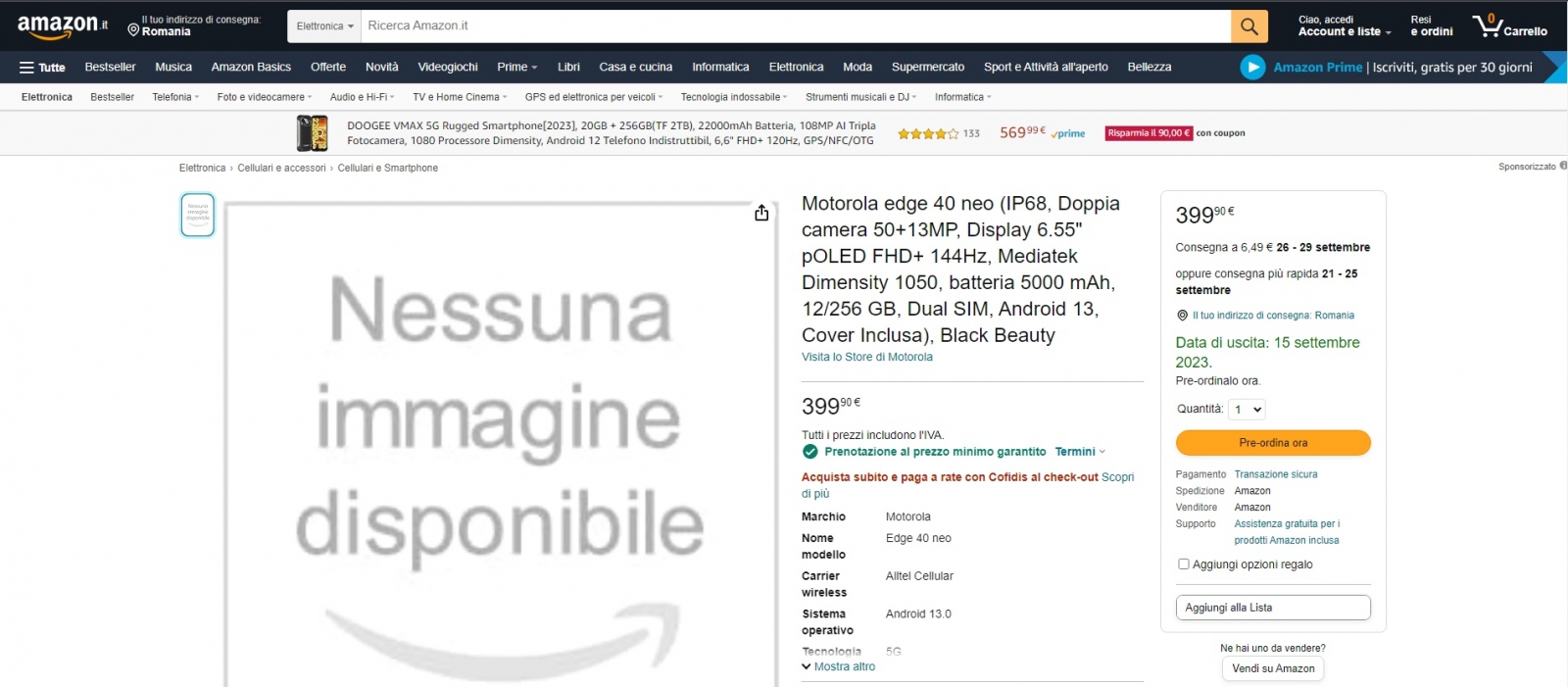 Bár nincsenek pontos adatok, az Amazon Olaszország oldalán megjelent információk szerint ez az új készülék szeptember 15-én fog megjelenni Európában. Az Edge 30 Neo utódjaként egy nagyobb, pontosabban 6,55 hüvelykes P-OLED kijelzővel rendelkezik, 144Hz-es frissítési ráta és FHD+ felbontás mellett.