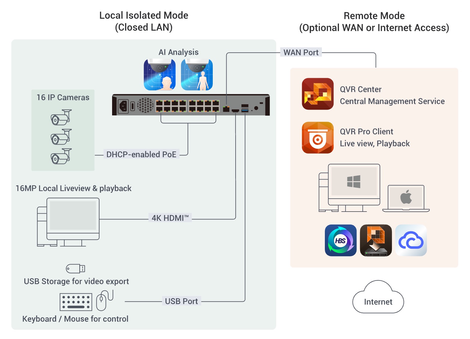 A QNAP egy új, vállalati szintű, de kompakt méretű videómegfigyelő megoldás bevezetésére készült: TVR-AI200 néven egy 16 csatornás PoE+ NVR jelent meg, amely kifejezetten üzletekbe, raktárakba és kisebb bolthálózatokba szánt, önálló működésre képes rendszer. A cél a gyors, informatikai támogatás nélküli telepítés — a gyártó szerint 10 percen belül működésre bírható.