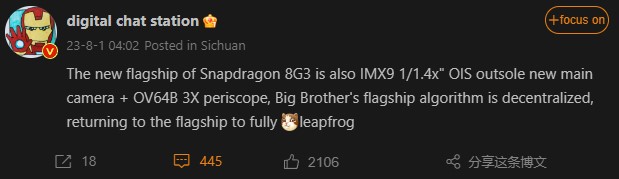 Az információkat a Digital Chat Station (DCS) tippelő szolgáltatta. A DCS a Weibo oldalon nemrég közzétett egy bejegyzést, amely szerint a realme GT5 Pro rendkívüli kameratelefon lesz, és egy OmniVision OV64B, 64 MP-es érzékelővel szerelt periszkópos kamerát kap, amely 3X optikai zoomot kínál.