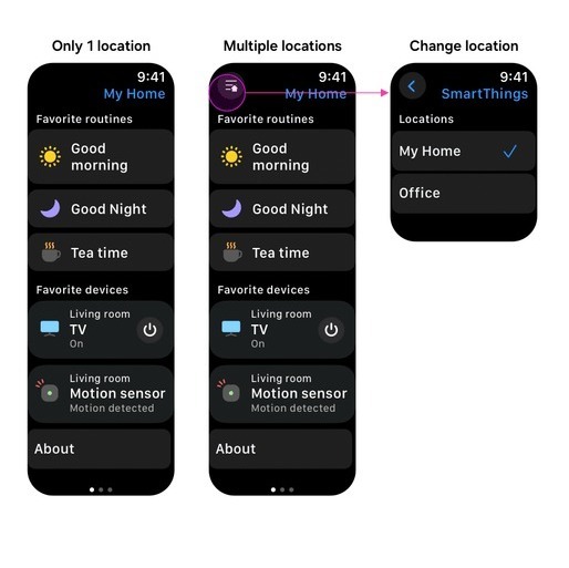 Az Apple Watch felhasználók is kaptak újdonságot: új SmartThings widget jelent meg, amely gyorsabb vezérlést és a helyszínek közti váltást is lehetővé teszi közvetlenül a csuklóról.