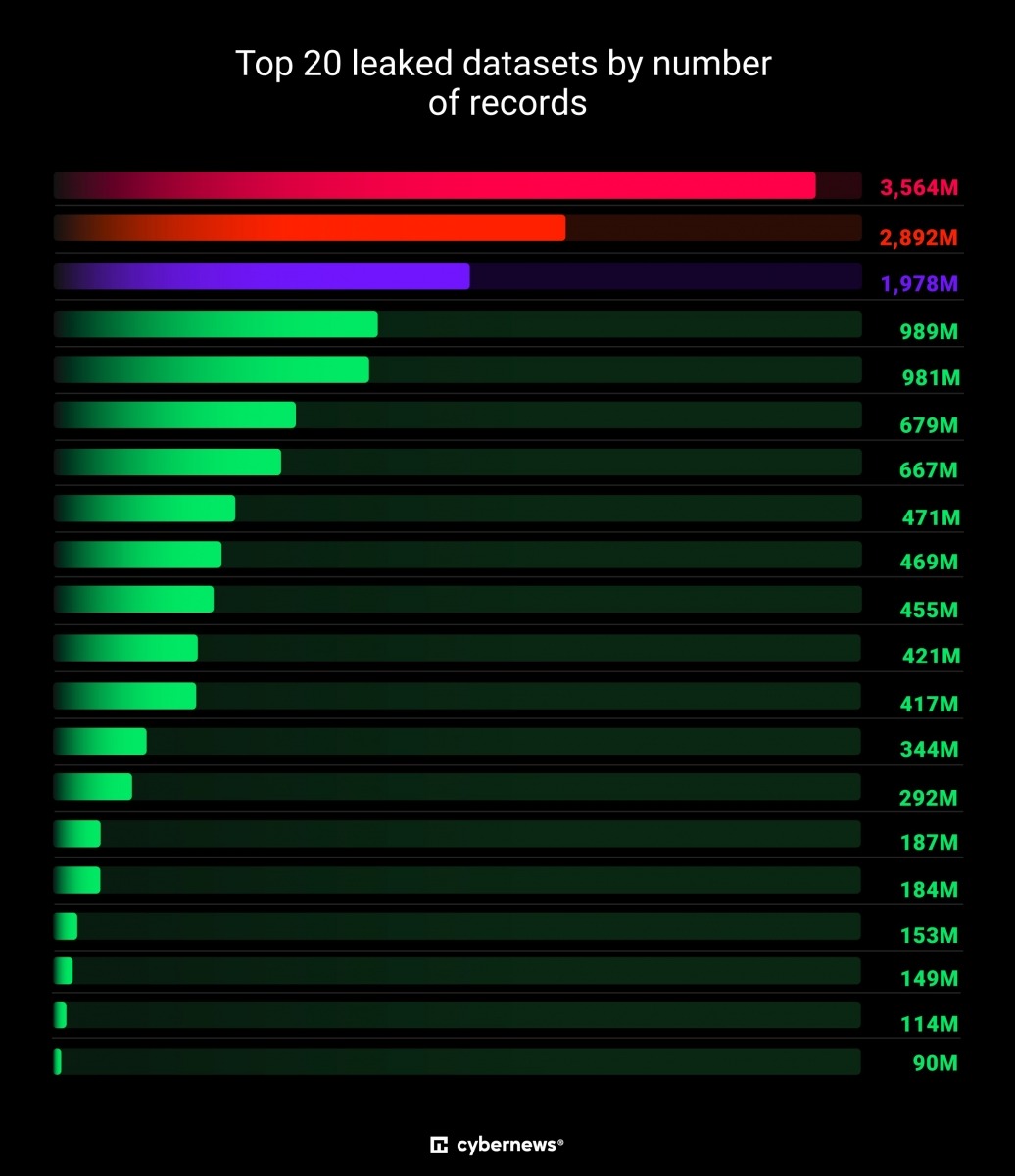 A kompromittált adatok között Google-, Apple-, GitHub-fiókok, valamint VPN-hozzáférések és üzenetküldő appok, például a Telegram hitelesítő adatai is szerepelnek. Egyetlen, korábban már ismert archívum 184 millió fiókot tartalmazott, a további adatbázisok pedig ezt tetemes mennyiséggel egészítik ki. A kutatók szerint az adatok jelentős része ugyan ismétlődik, de a mérték még így is felfoghatatlan – több milliárd ember lehet érintett, miközben az internethez csatlakozott felhasználók száma világszinten 5,5 milliárd körül mozog.
