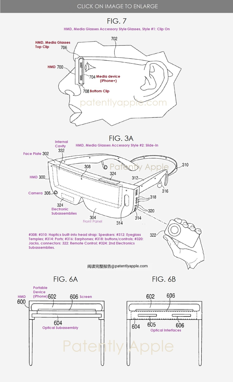 Ez a mostani szabadalom több újdonságot is tartalmaz, például egy kép a képben (PIP) funkciót vagy a külvilág megjelenítésének lehetőségét. Az ábrákon látható, hogy az eszközt többféle stílusban tervezték, beleértve egy olyat is, ahol az iPhone a szemüvegbe csúszik.