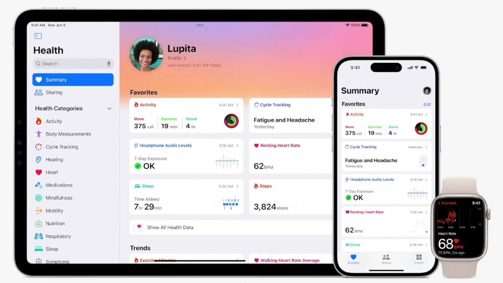 A Színpadmenedzser, amely lehetővé teszi több alkalmazás egyszerre történő megnyitását, most már rugalmasabban kezeli az ablakok méretezését és pozicionálását. Az Apple végre az iPadre is elhozta az Egészségügyi alkalmazást, kihasználva a nagyobb képernyőt a felhasználó egészségügyi adatainak megjelenítésére.