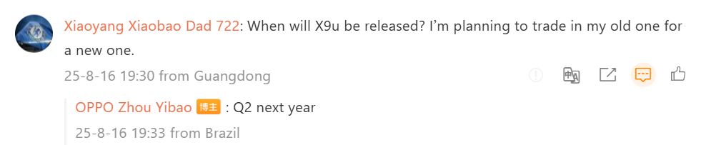 A Find széria termékmenedzsere, Zhou Yibao egy brazíliai üzleti útról jelentkezett be, ahol elmondása szerint két új modellt is tesztel – nevet nem mondott, de egyértelmű, hogy a Find X9 és X9 Pro prototípusairól van szó. Yibao megerősítette: amint visszatér Kínába, elindítják az első hivatalos előzeteseket, ami szeptember közepére tehető.