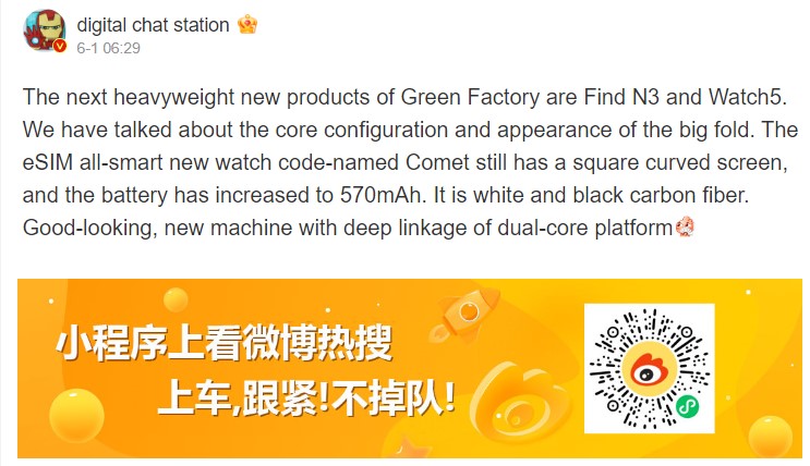 Az OPPO legújabb viselhető eszközének bevezetése a láthatáron van. A vállalat jelenlegi termékválasztékában megtalálható a Watch 3 és a Watch 3 Pro, azonban Kínában a „4” számot szerencsétlennek tartják, ezért már a Watch 5 óra bevezetésére készülünk. Ma érkeztek információk, hogy az új viselhető eszköz egyidejűleg jelenik meg a Find N3 új összehajtható telefonnal, és a készülékek hardver specifikációi már nyilvánosságra kerültek. Alább találhatók a részletek.