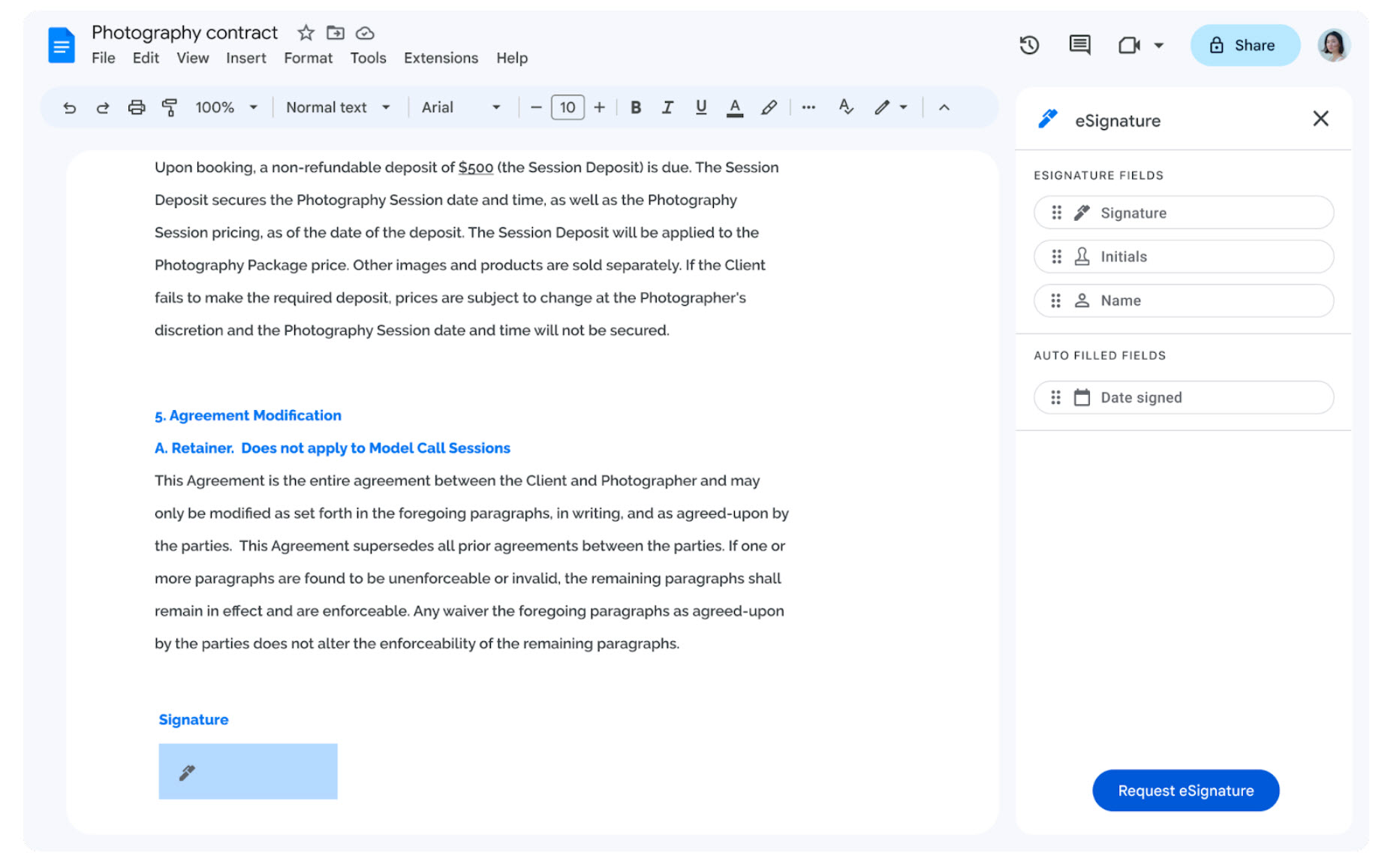 Az eSignature nyílt béta verzióként lesz elérhető a Google Workspace egyéni előfizetői számára, és nincs szükség külön regisztrációra a funkció használatához. Ezen kívül a Google Workspace néhány ügyfele számára is elérhető lesz. A szolgáltatás elősegíti az egyéni vállalkozók és kisvállalkozások számára, hogy hivatalos szerződésekbe illesszenek és kérelmezzenek aláírásokat közvetlenül a Google Docs-ban.