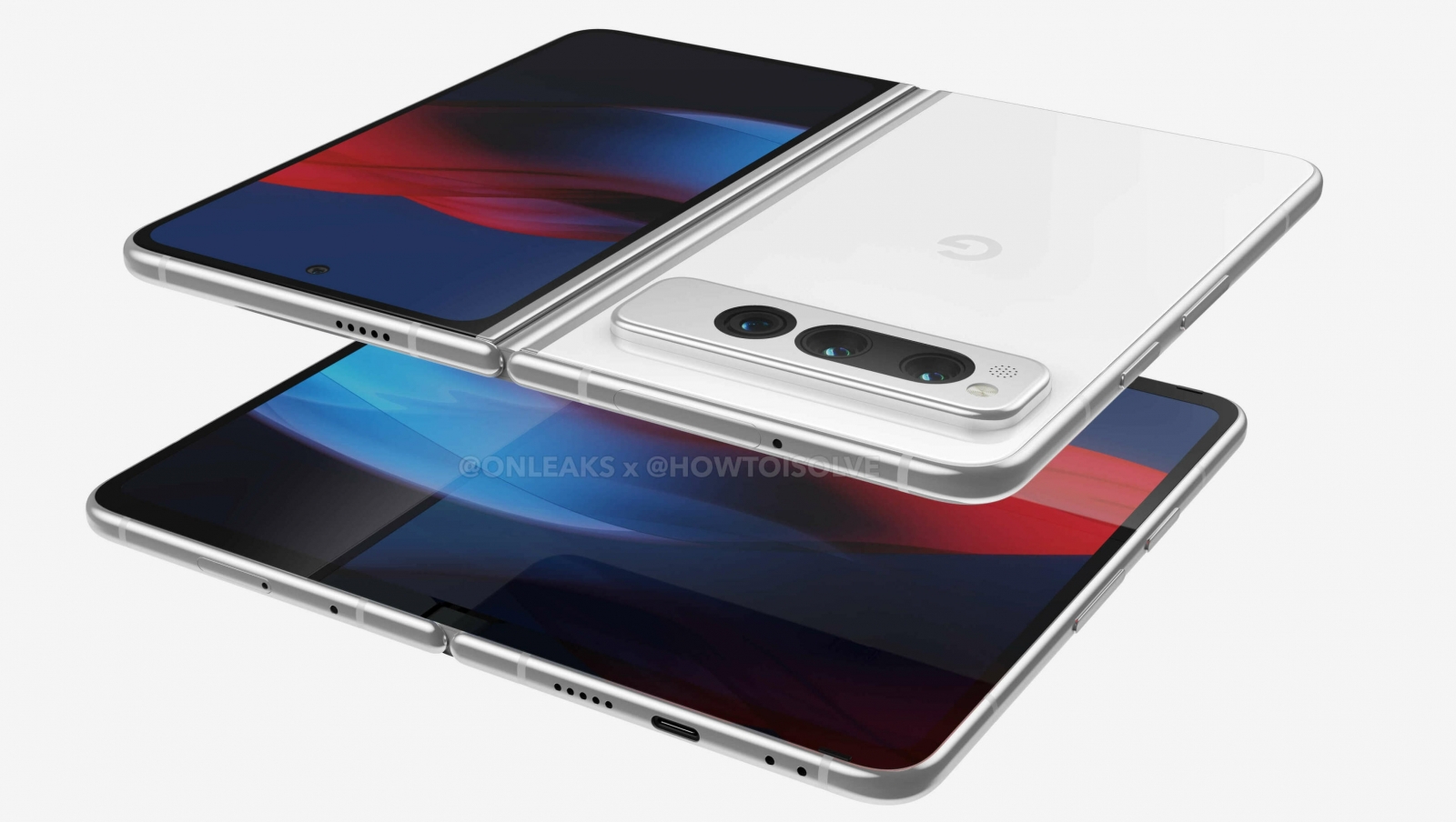 A Google Pixel Fold több renderképen is felbukkant már, és néhány részlet is ismert a hardveréről. A külső kijelző mérete 5,57 hüvelyk, míg a belső kijelző 7,57 hüvelykes lesz. A forma és a kialakítás az OPPO Find N2-re emlékeztet. A telefon egy Tensor processzorral lesz felszerelve, a fényképezőgép modul pedig a Pixel 6 vagy Pixel 7 modellből származik. Az ára az Egyesült Államokban 1 799 dollár lesz (kb. 617 500 Ft).