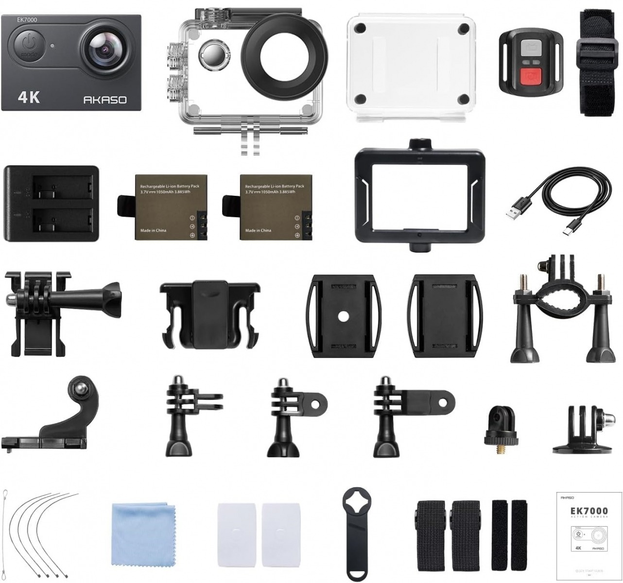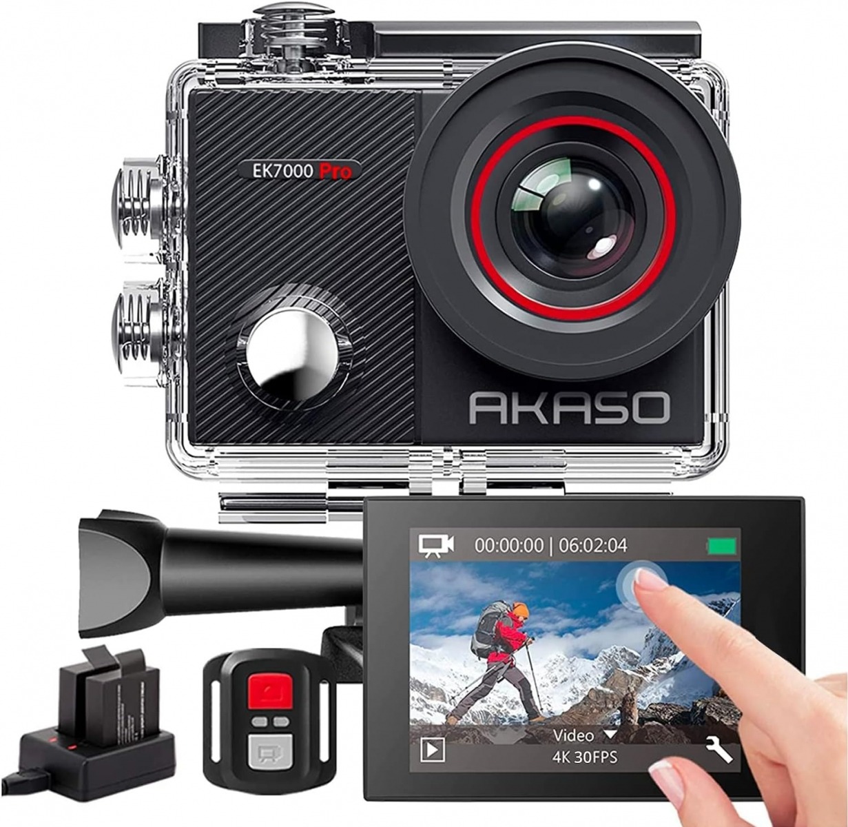 A készlet 19 tartozékot tartalmaz, beleértve egy védőtokot és egy tartalék akkumulátort, amely 90 perccel növeli a felvételi időt. Tehát, ha mindkét akkumulátor teljesen fel van töltve, körülbelül 180 percig tudsz felvételeket készíteni. Az AKASO EK7000 IP68 minősítéssel rendelkezik, így akár 30 méter mélységig vízálló.