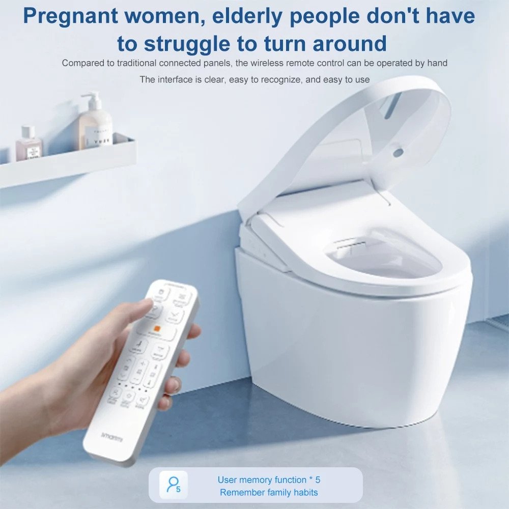A Smartmi modell számos funkcióval rendelkezik: túlmelegedés elleni védelem, elektromos tápellátás, IPX4 vízállósági minősítés. A csomag tartalmaz egy távirányítót, szűrőket, rögzítő elemeket és az összes szükséges kiegészítőt a beüzemeléshez. A távirányítóval többek között a fedél emelését is vezérelhetjük, ami nagy segítséget jelent a mobilitási problémákkal küzdők számára.