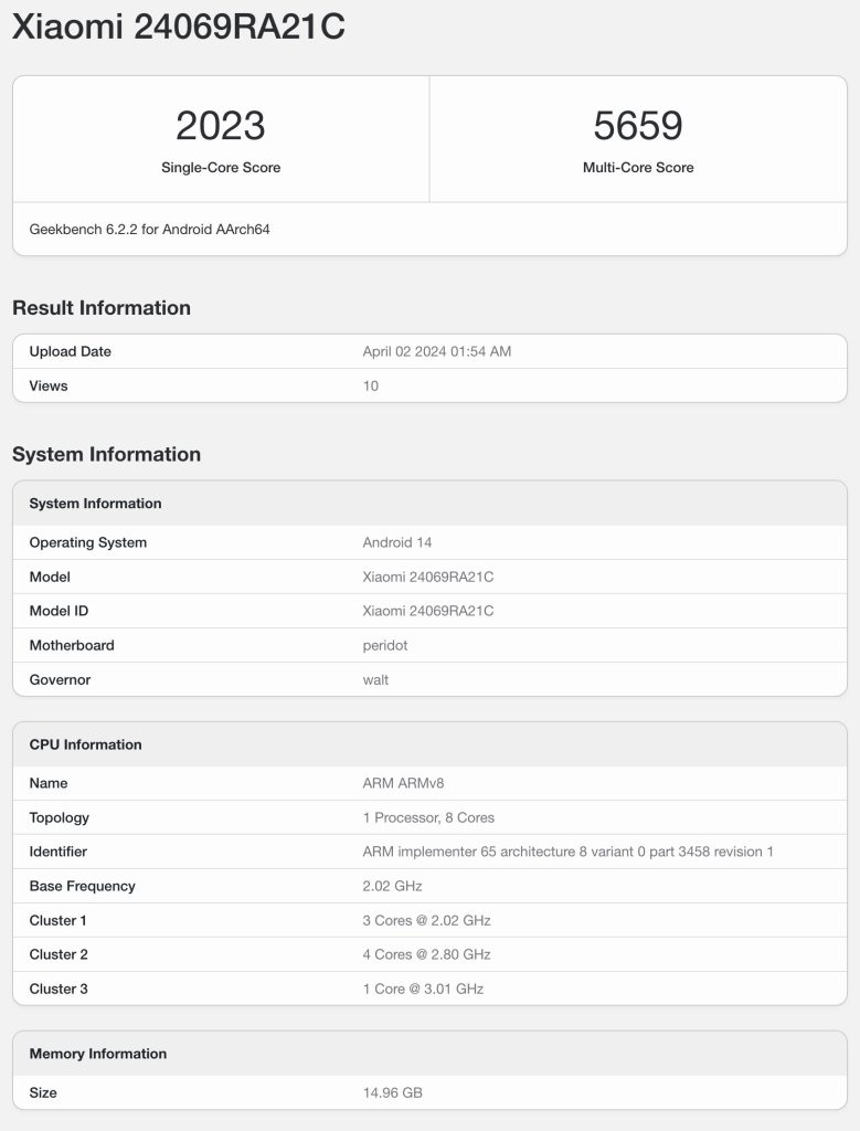 A GeekBench listázásból az is kiderül, hogy a készülék Android 14 operációs rendszerrel érkezik, ami az új szoftverfrissítésekkel még több funkcionalitást és biztonságot kínál majd a felhasználóknak. A telefon bemutatása Kínában március közepére várható, és globálisan a Poco márkanév alatt kerül majd piacra. Az AnTuTu benchmark eredményei alapján pedig az eszköz több mint 1.7 millió pontot érhet el, ami tovább erősíti a készülék piaci pozícióját mint egy technológiai csúcsmodell.