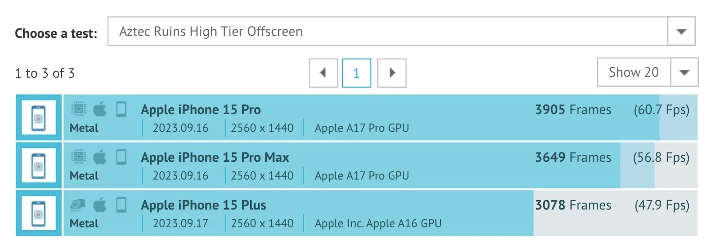 A legnagyobb különbség a GPU teljesítményben volt tapasztalható, ahol a két telefon között körülbelül 130 000 pontnyi volt a különbség. Az Apple A17 Pro egy komoly lapka 19 milliárd tranzisztorral, hat CPU maggal, két teljesítményorientált és négy hatékonyságra optimalizált maggal.
