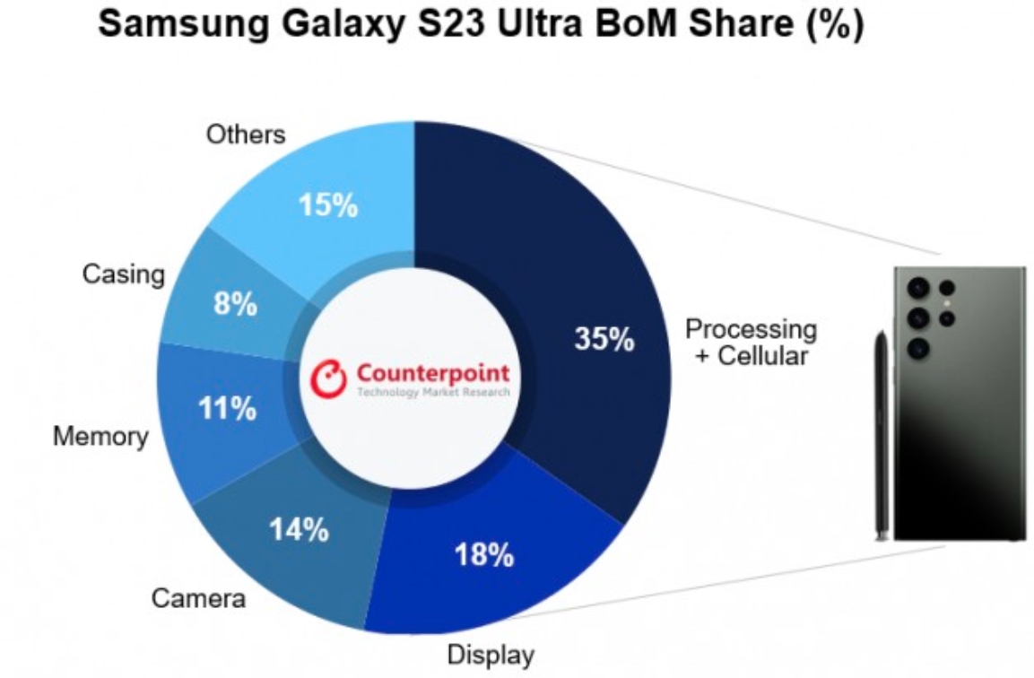 A Samsung Galaxy S23 Ultra gyártási költségei olyan téma, amit eddig csak kevesen ismertek alaposan. Most a Counterpoint Research elemzése alapján beleláthatunk ebbe a bonyolult és összetett folyamatba. A gyártási költségek, más néven a „Bill of Materials”, ebben az esetben 469 dollárba, azaz körülbelül 162 000 Ft-ba kerülnek. Ez a szám a telefon összes alkotóelemeinek és előállításának költségét takarja.