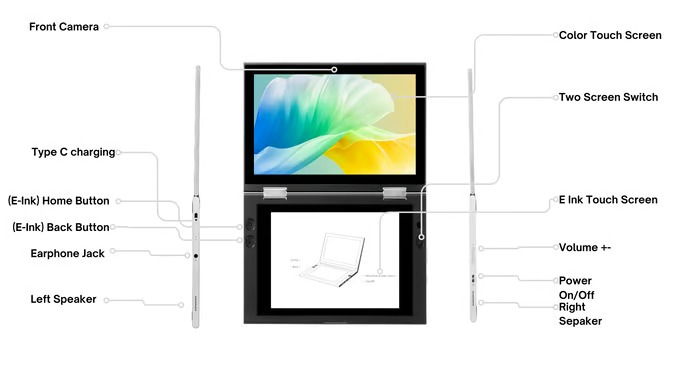 A táblagép Qualcomm Snapdragon 600 sorozatú processzorral működik, 4 GB RAM-mal és 64 GB tárhellyel. Az LCD kijelző 1280 x 800 pixeles, míg az E Ink kijelző 1872 x 1404 pixeles. Az E Ink kijelző ugyanaz, mint ami az Onyx BOOX 7.8 hüvelykes táblagépeken található. További jellemzői közé tartozik a 7000 mAh akkumulátor, 8 MP-es hátlapi és 2 MP-es előlapi kamera, sztereó hangszórók, USB Type-C port, 3,5 mm-es audio csatlakozó, valamint WiFi 5 és Bluetooth 4.2 támogatás.