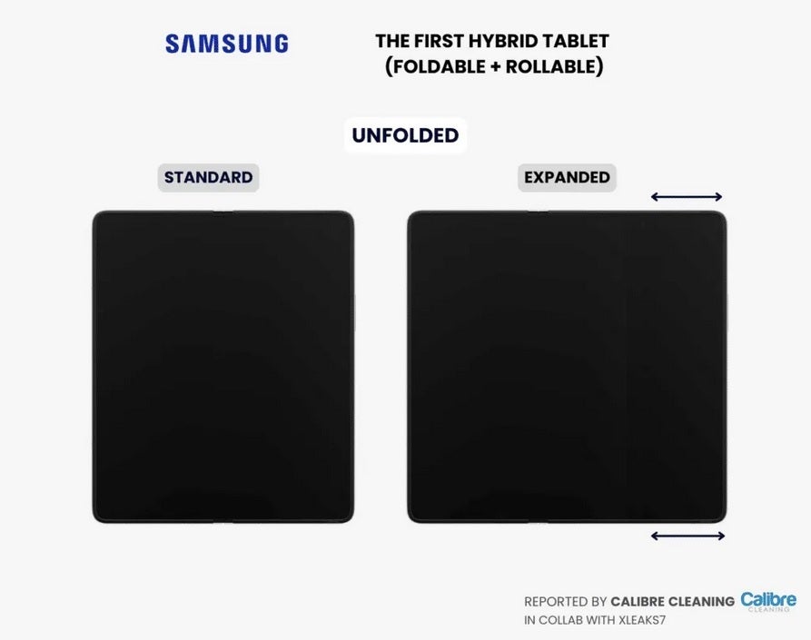 Ahelyett, hogy ismételnénk, miről szól a Samsungnak odaítélt szabadalom, megmutathatjuk a Calibre Cleaning és XLeaks7 által a szabadalom alapján készített koncepciórajzokon. Ez egy hibrid, összecsukható és kihúzható táblagép. Kívülről egy szokásos Galaxy Z Fold telefonra hasonlít, bár a hátsó kamerák azon az oldalon helyezkednek el, amely nem rendelkezik zsanérral. Fedőképernyő sem található rajta.