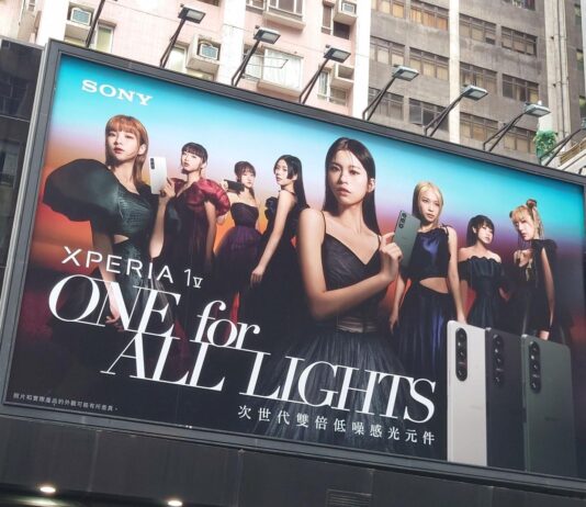 Óriásplakátok tárják fel az új Sony Xperia 1 V készülék dizájnját