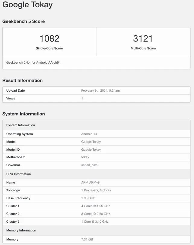 A Geekbench adatbázisában nemrégiben feltűnt egy új Google okostelefon, „Tokay” kódnévvel, ami erős jelzést adhat a közelgő Google Tensor G4 lapkáról. A készülék egyedülálló magos tesztjében 1082 pontot, míg a többmagos tesztben 3121 pontot ért el, ami kisebb visszaesést jelent a korábbi Pixel 8 és Pixel 8 Pro modellekhez képest. Ezen eredmények fényében felmerül a kérdés az adatok megbízhatóságáról, tekintettel arra, hogy a Geekbench listázásokat korábban már manipulálták.