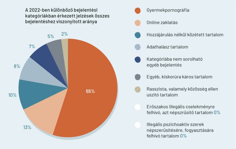 A leggyakrabban jelzett téma a gyermekpornográfia volt, amely a tavalyi bejelentések 55%-át tette ki. Az online zaklatás és az érintett hozzájárulása nélkül közzétett tartalmak szintén gyakran szerepeltek a bejelentésekben.