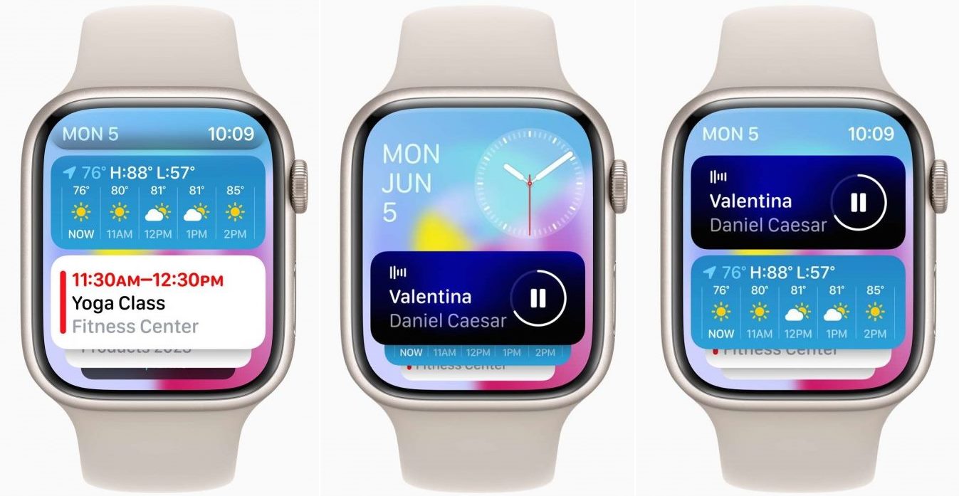 A watchOS 10 továbbfejleszti a megjelenítést is, így az alkalmazások több „képernyőt” élvezhetnek, teljes képernyős megjelenítéssel és több információval. Új óralapok is érkeznek, néhány színváltozó, ami a nap folyamán változik a színárnyalata, és vannak exkluzív Snoopy és Woodstock modellek is.